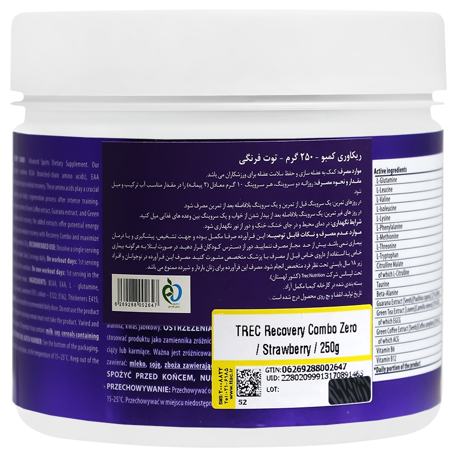 ریکاوری کمبو زیرو ترک نوتریشن طعم توت فرنگی ۲۵۰ گرم_Trec Nutrition Recovery Combo Zero 250 mg