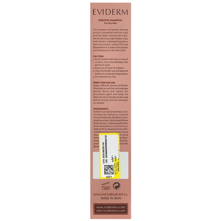 شامپو حاوی کراتین موی خشک اویدرم_Eviderm Sulfate Free Keratin Shampoo