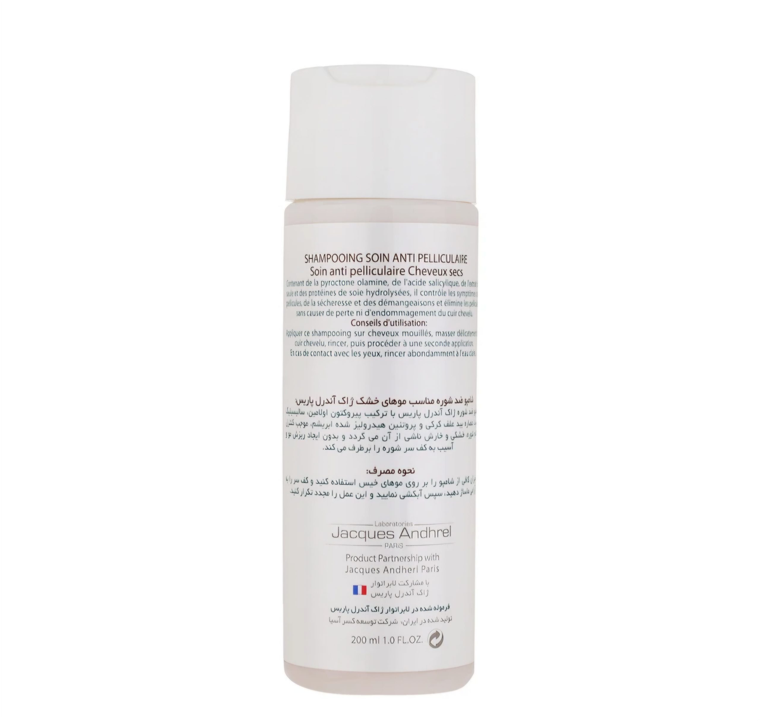 شامپو ضد شوره ژاک آندرل پاریس برای موهای خشک یکی از محصولات منحصر به فرد و موثر جهت رفع و بهبود شوره سر است که با فرمولاسیون تخصصی، تحت لیسانس فرانسه و توسط شرکت توسعه کسر آسیا تولید و عرضه بازار گردیده است. شامپو ضد شوره خشک ژاک آندرل علاوه بر کنترل شوره سر خشک، پوسته ریزی و خارش و التهابات پوست سر را بهبود می بخشد. این محصول فاقد ترکیبات حساسیت زا بوده و سبب ایجاد ریزش مو نمی شود. شامپو ضد شوره ژاک آندرل برای موهای خشک در حجم ۲۰۰ میلی لیتر تولید شده است.