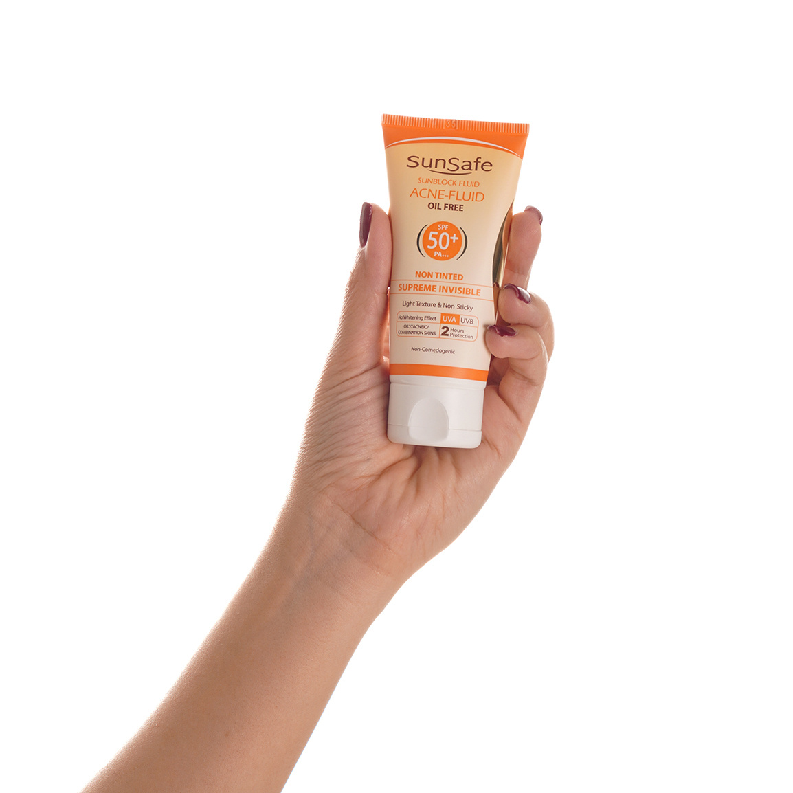 فلوئید ضد آفتاب فاقد چربی بدون رنگ SPF50 سان سیف_Sun Safe Acne Sunblock Fluid Oil Free SPF50