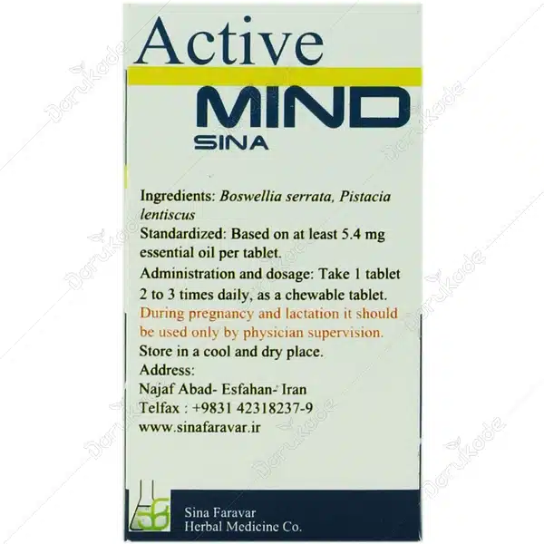 - اکتیو مایند حاوی گیاهان کندر و مصطکی
