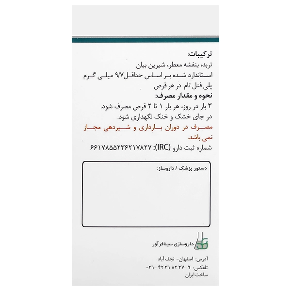 - نحوه مصرف:۳ بار در روز، هر بار ۱ تا ۲ قرص همراه با اب کافی مصرف شود.