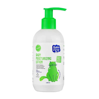 لوسیون مرطوب کننده گیاهی کودک حجم ۲۰۰میل بیبی فرست حاوی روغن جوجوبا، کالاندولا، هسته انگو،عصاره آلوئهورا، بابونه و پنبه دانه بوده و مغذی پوست نوزادان و کودکان است.