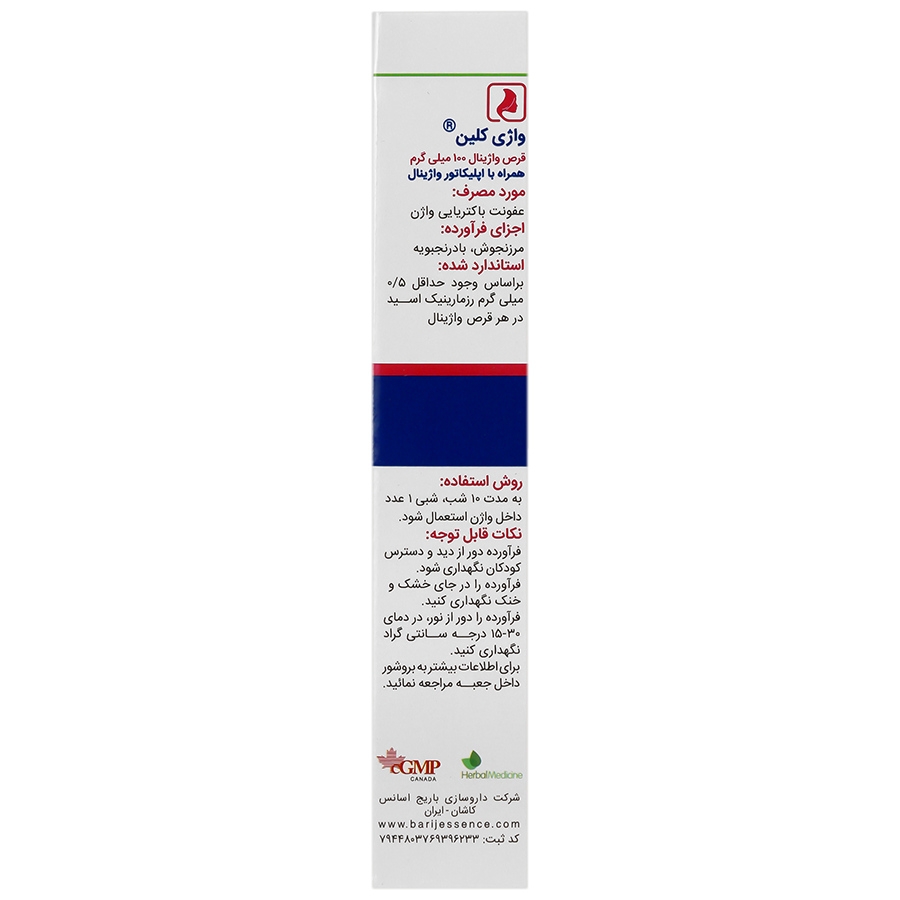 - قرص واژی کلین باریج به صورت بلیستر های ۱۰ عددی به همراه اپلیکاتور واژینال موجود می باشد.