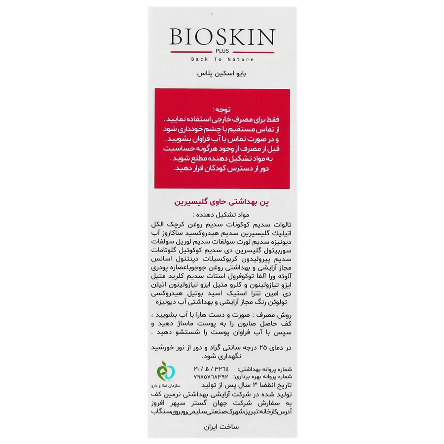 ویژگی های پن گلیسیرینه ملایم بایو اسکین: