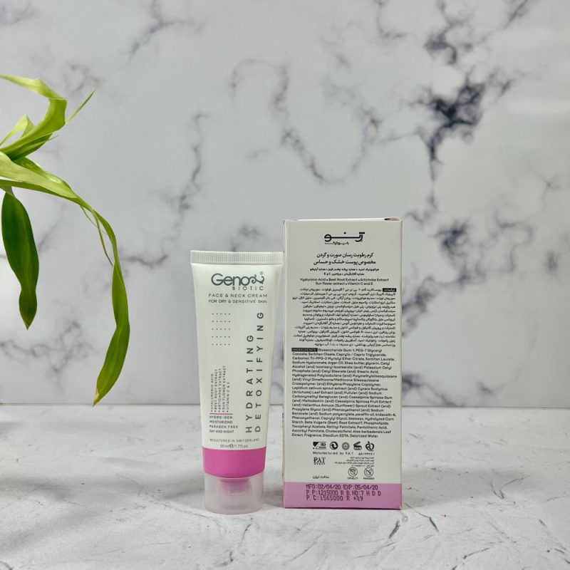 کرم رطوبت رسان صورت و گردن ژنوبایوتیک مناسب پوست خشک و حساس_Genobiotic Hydrating Detoxifying Face & Neck Cream