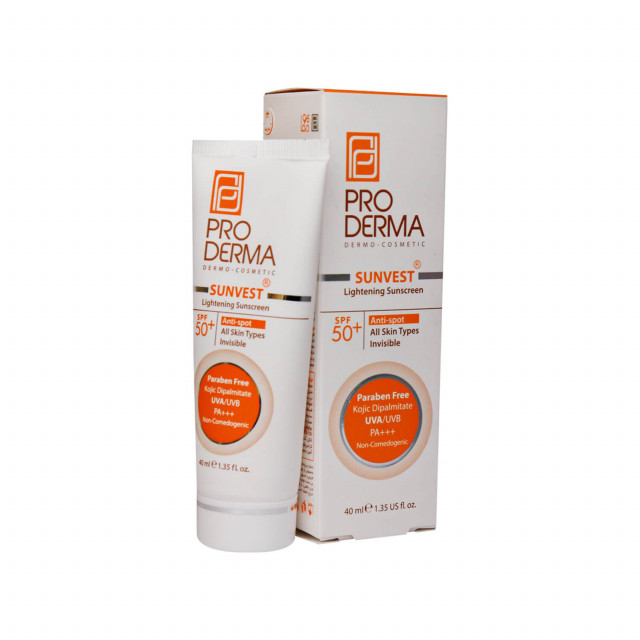 کرم ضد آفتاب و روشن کننده لک پوست SPF50 بدون رنگ پرودرما_Pro Derma Sunvest Lightening Sunscreen Cream SPF50
