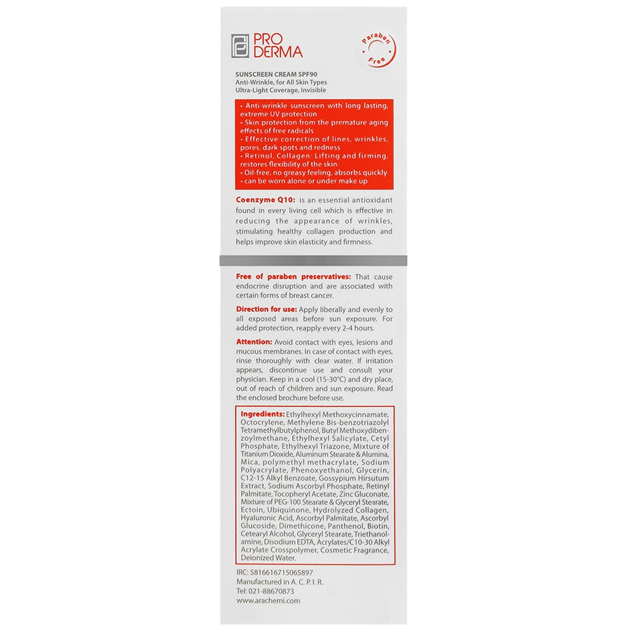 ویژگی های کرم ضد آفتاب و ضد چروک SPF90 پرودرما:
