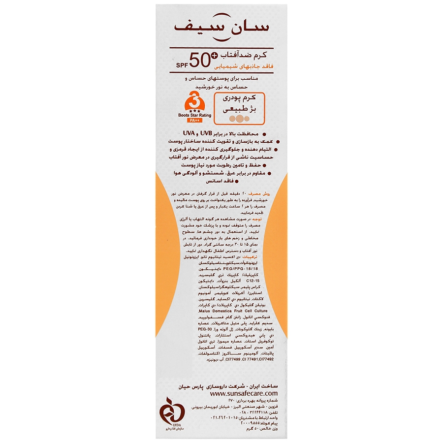 کرم ضدآفتاب فاقد جاذبهای شیمیایی SPF50 بژ طبیعی سان سیف_Sun Safe VitiSense Sunblock Cream SPF50
