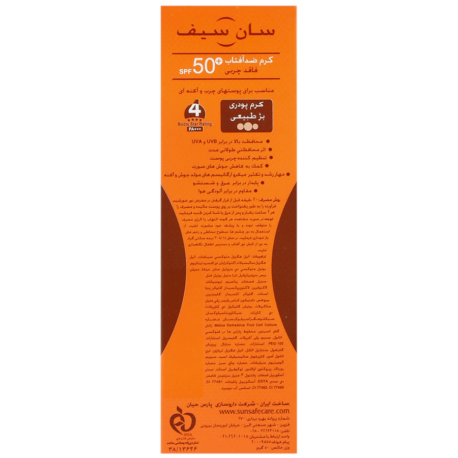 کرم ضد آفتاب SPF50 ضد آکنه سان سیف بژ طبیعی_Sun Safe Acneic Sunblock Cream SPF50