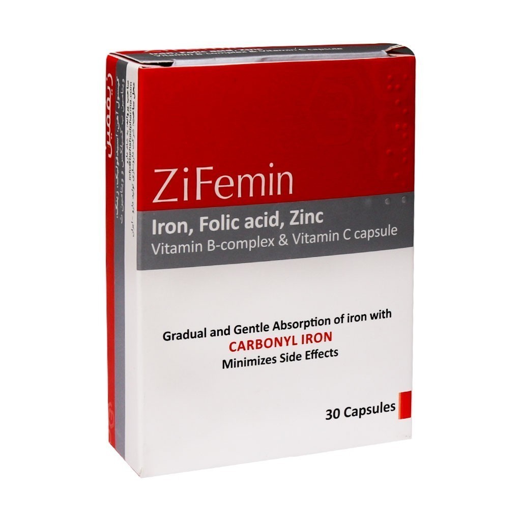 - کپسول زیفمین علاوه بر آهن حاوی ویتامین های B1 ،B2 ،B3 ،B6 ،B9 و زینک می باشد.
