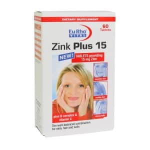 ویتامین های ب کمپلکس موجود در زینک ۱۵ یوروویتال نقش مهمی در حفظ سلامت کلی بدن و عملکرد طبیعی اندام های بدن دارند. کمبود این ویتامین ها نیز به مقدار قابل توجهی سلامت پوست، مو و ناخن را تحت تأثیر قرار می دهد. قرص زینک پلاس ۱۵ حاوی زینک ۱۵ میلی گرم زینک بصورت ملح سیترات با تأمین تمام ۸ ویتامین از گروه ب کمپلکس، نیاز روزانه افراد بزرگسال به این ریز مغذی ها را برطرف می کند.